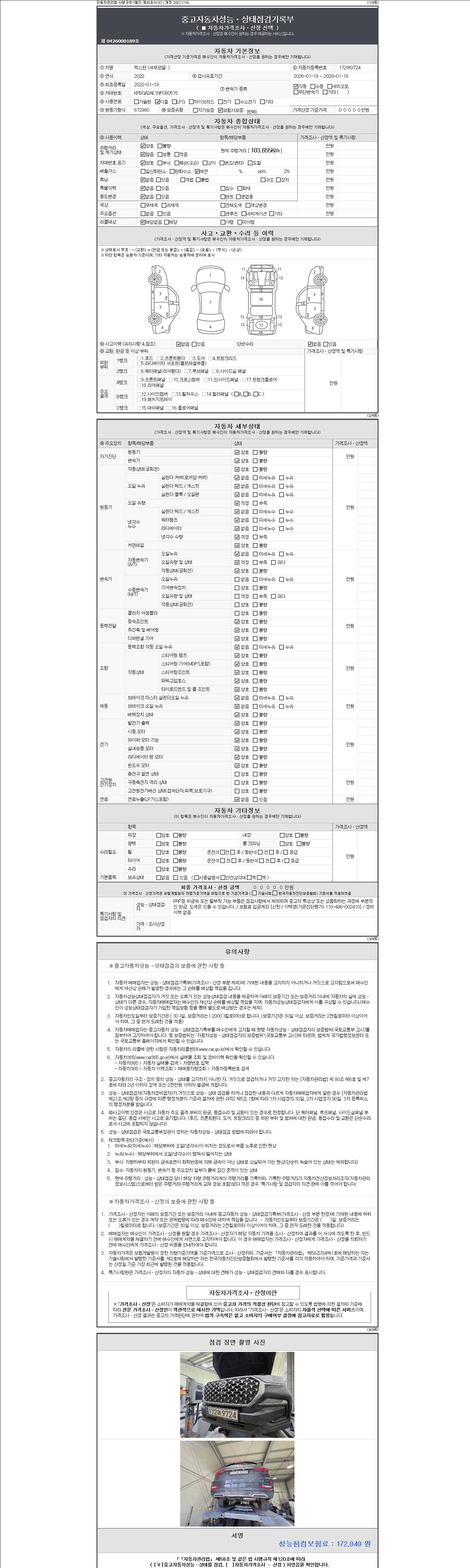 | 주행거리 | 103,655 km | 차량번호 | 172머9724 |