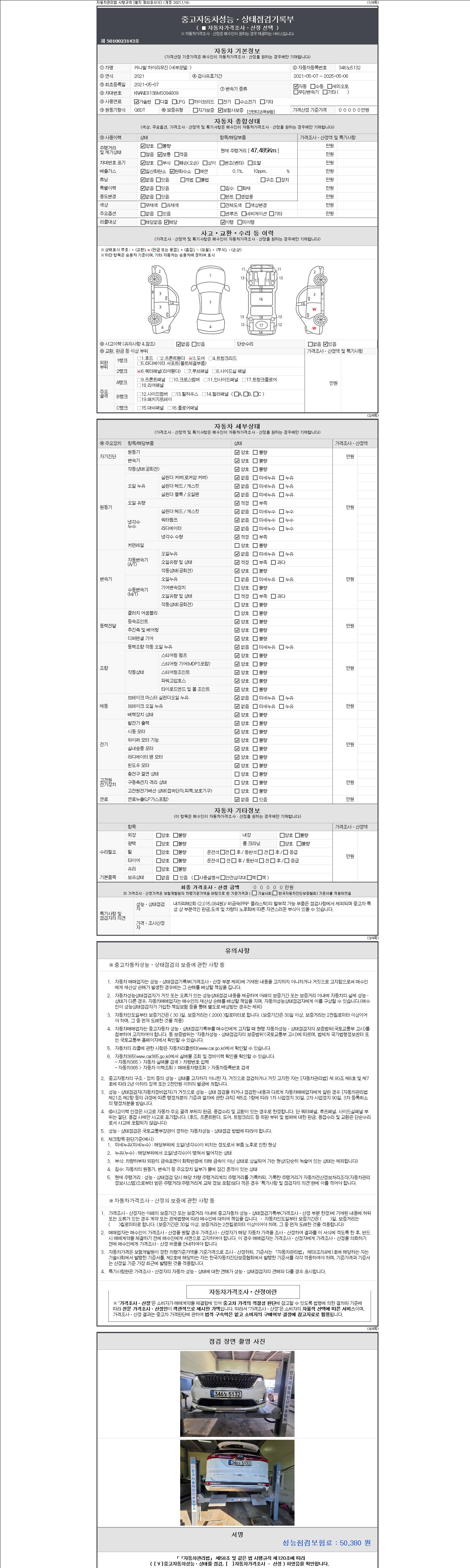 2. 차량 등록증이나 성능점검지 등을 상담자에게 요청및 확인하시고 사전에 미리 점검 하시기를 권유드립니다.