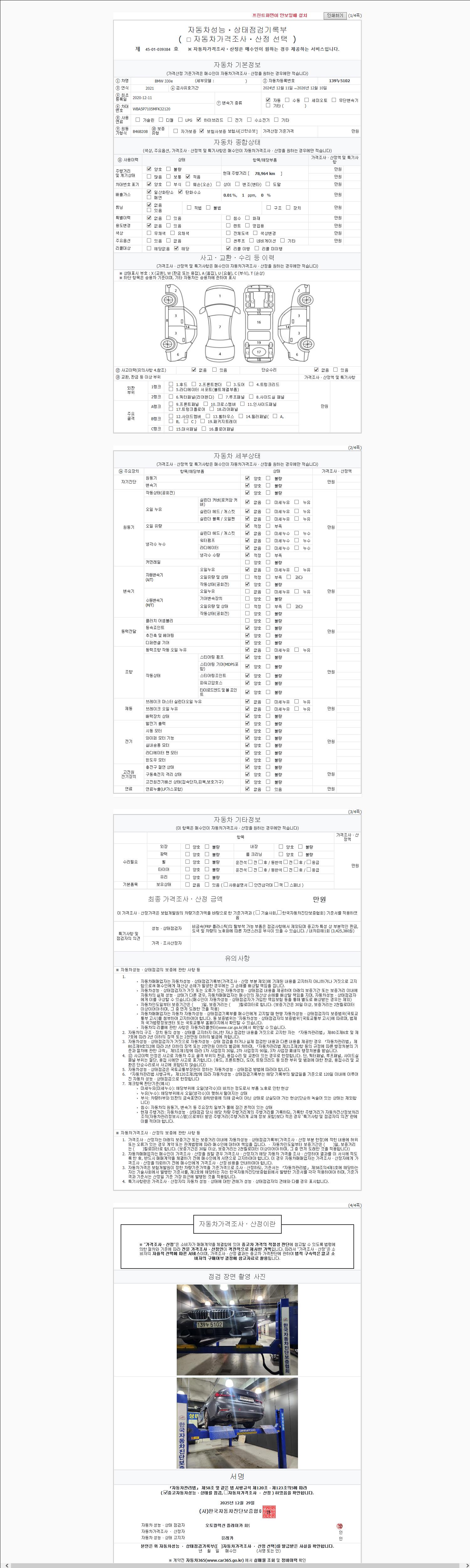 -중고자동차 매매업자를 통해 차량을 구입하실 경우 반드시 "중고자동차 성능, 상태점검 기록부"를 교뷰 받으셔야 하며, 매매업자는 반드시 의무 교부 하여야 압니다.