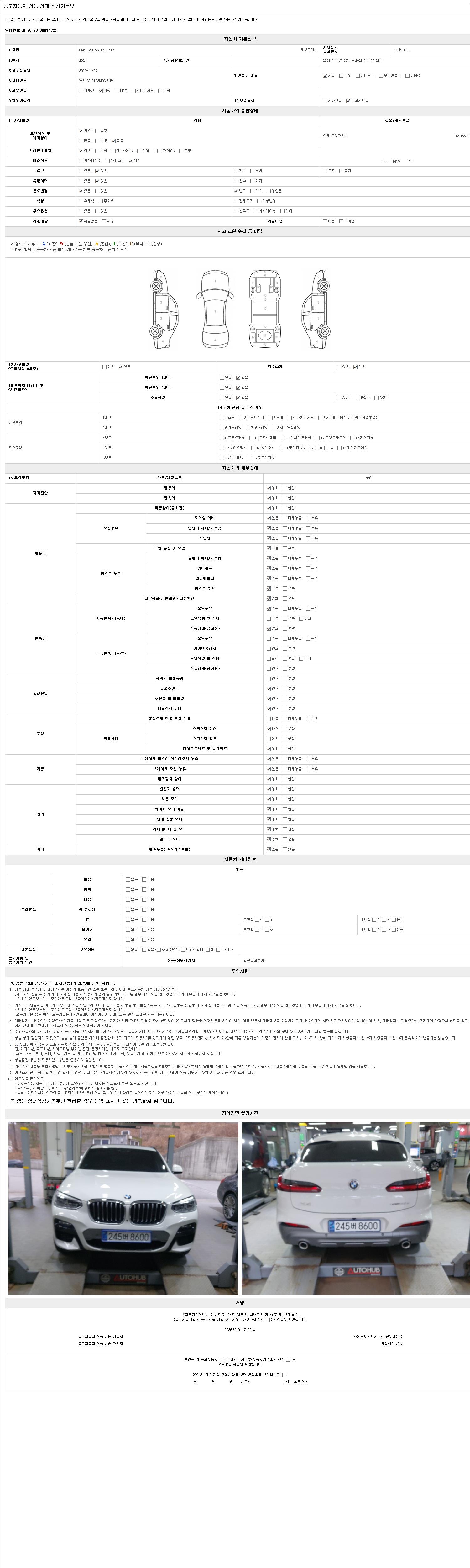 -중고자동차 매매업자를 통해 차량을 구입하실 경우 반드시 "중고자동차 성능, 상태점검 기록부"를 교뷰 받으셔야 하며, 매매업자는 반드시 의무 교부 하여야 압니다.