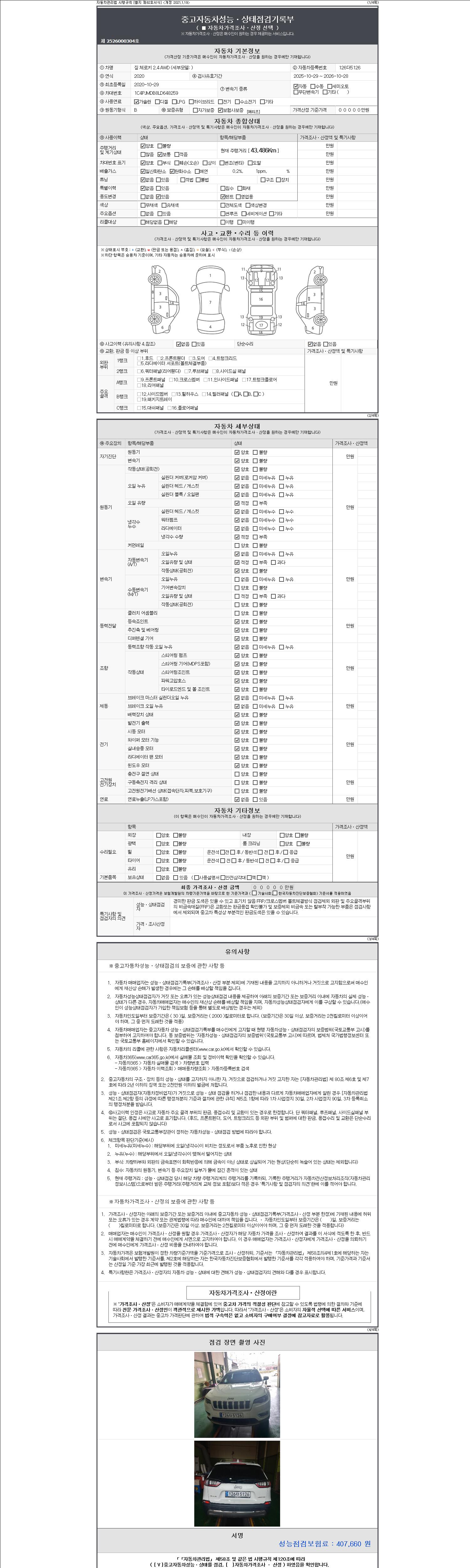 2. 차량 등록증이나 성능점검지 등을 상담자에게 요청및 확인하시고 사전에 미리 점검 하시기를 권유드립니다.
