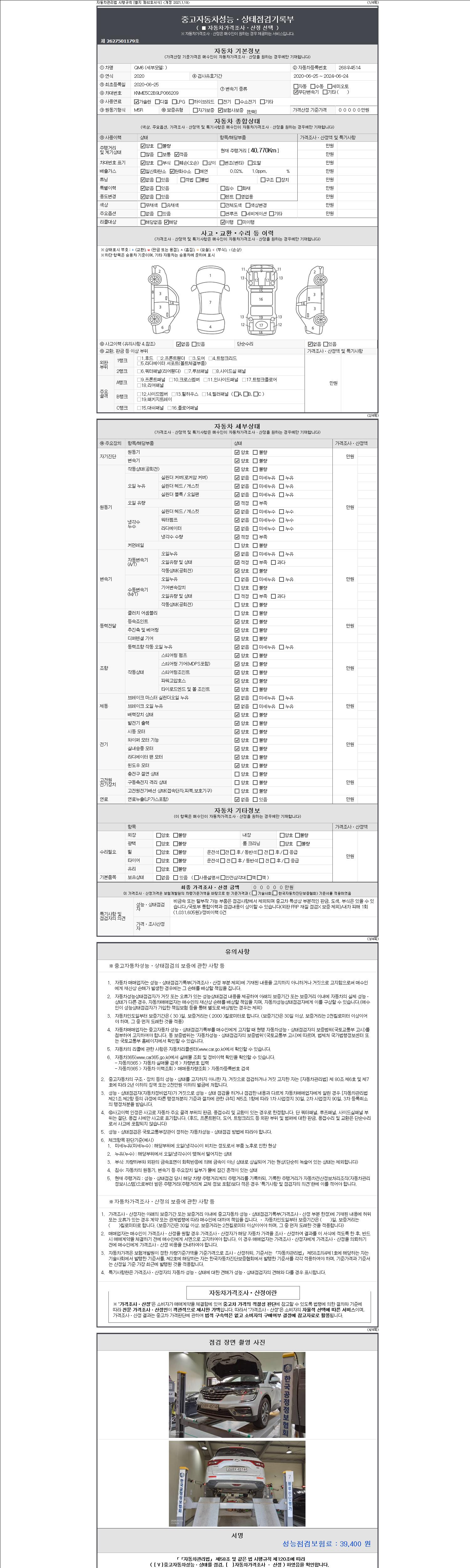 2. 차량 등록증이나 성능점검지 등을 상담자에게 요청및 확인하시고 사전에 미리 점검 하시기를 권유드립니다.