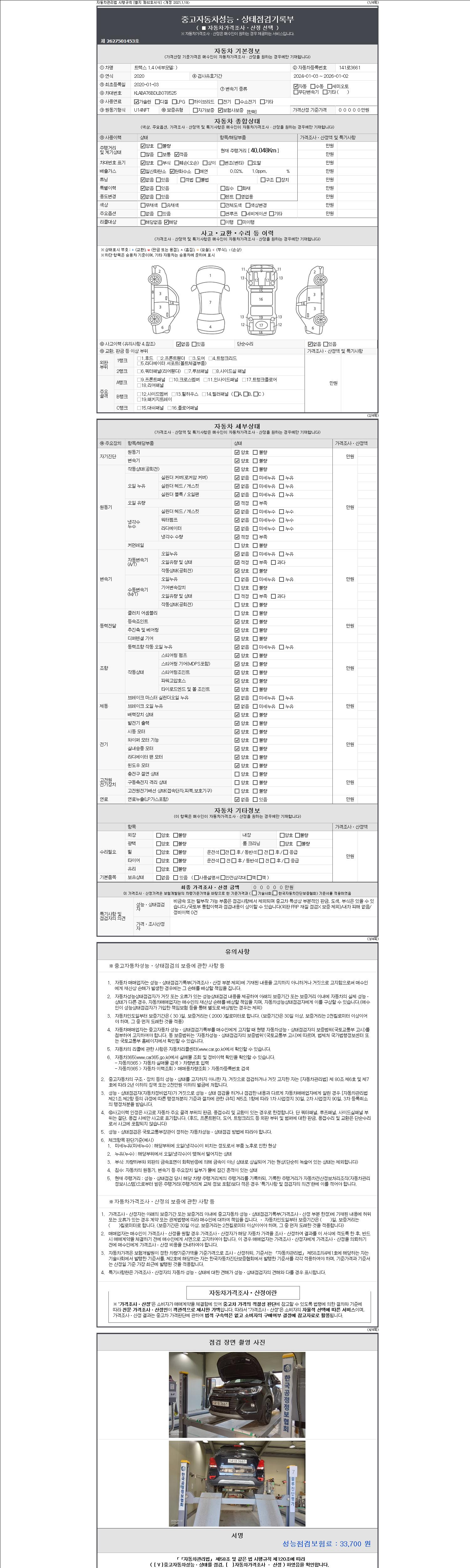 2. 차량 등록증이나 성능점검지 등을 상담자에게 요청및 확인하시고 사전에 미리 점검 하시기를 권유드립니다.