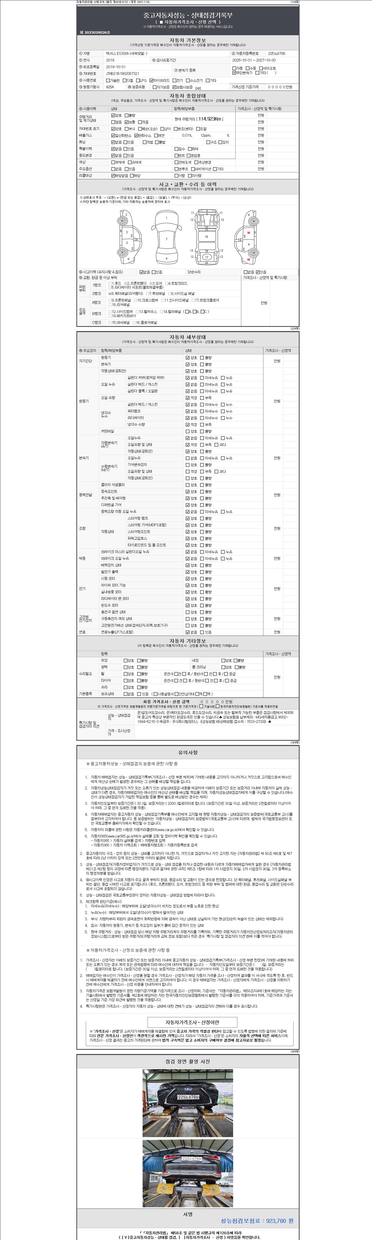 | 주행거리 | 114,923 km | 차량번호 | 225노6786 |