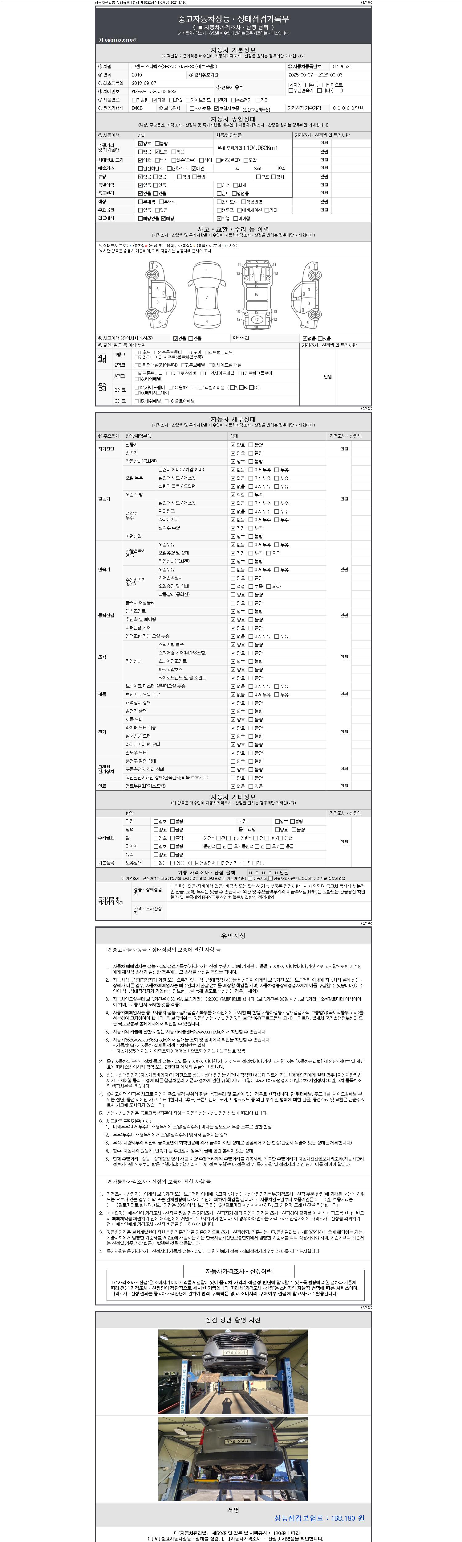 2. 차량 등록증이나 성능점검지 등을 상담자에게 요청및 확인하시고 사전에 미리 점검 하시기를 권유드립니다.