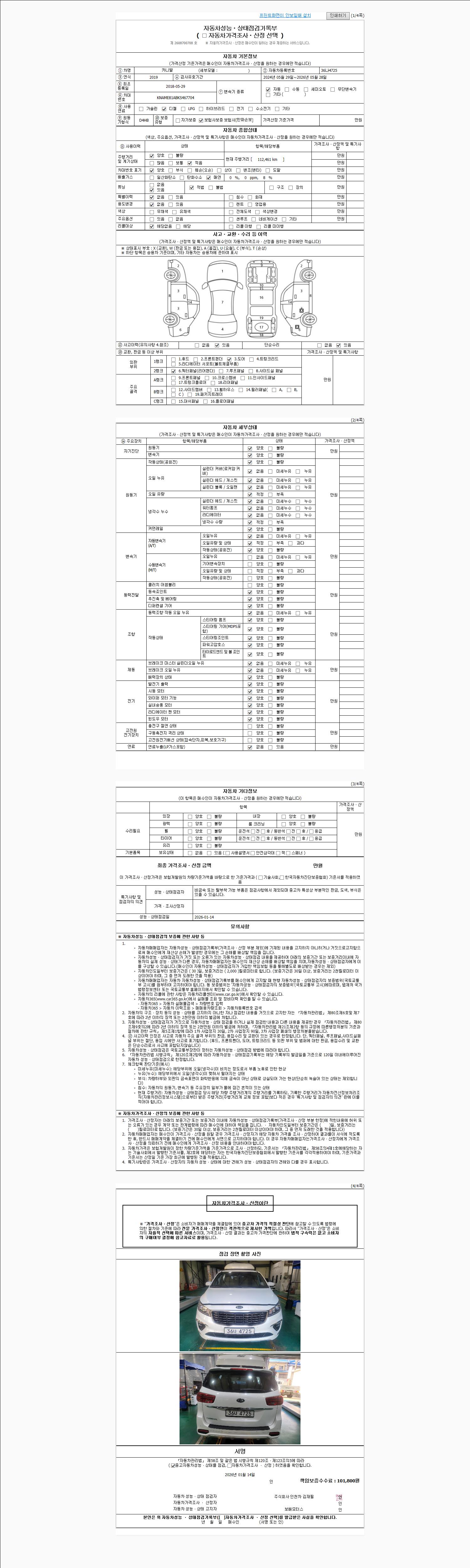 2. 차량 등록증이나 성능점검지 등을 상담자에게 요청및 확인하시고 사전에 미리 점검 하시기를 권유드립니다.