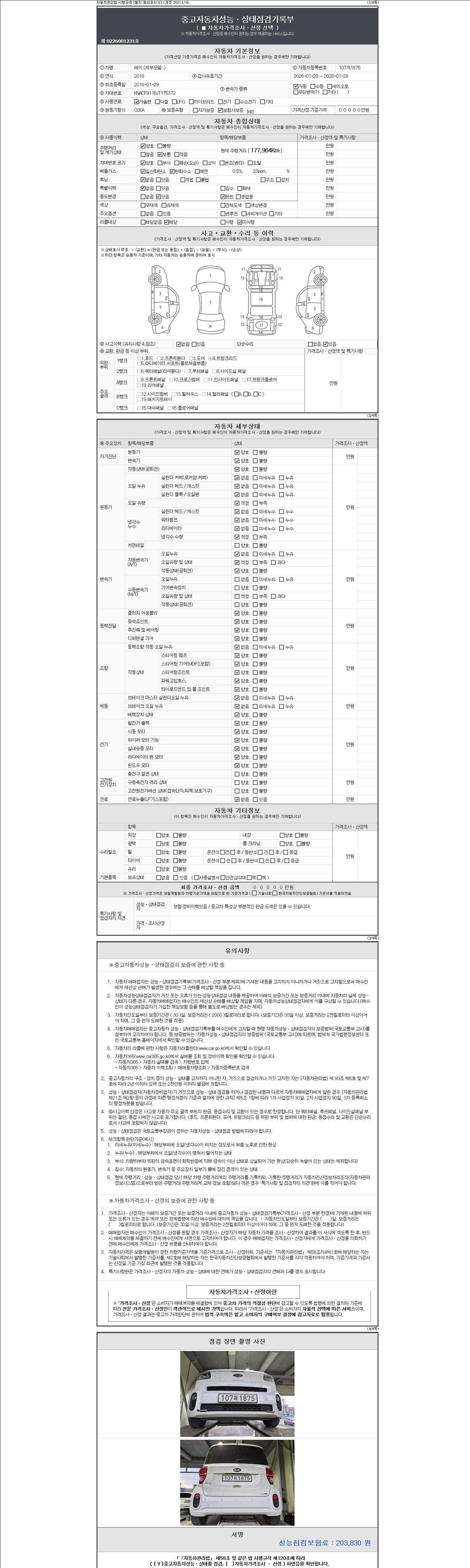 오토|휘발유|2018년 1월|177,964 km 107저1875| cc|흰색|무사고 |