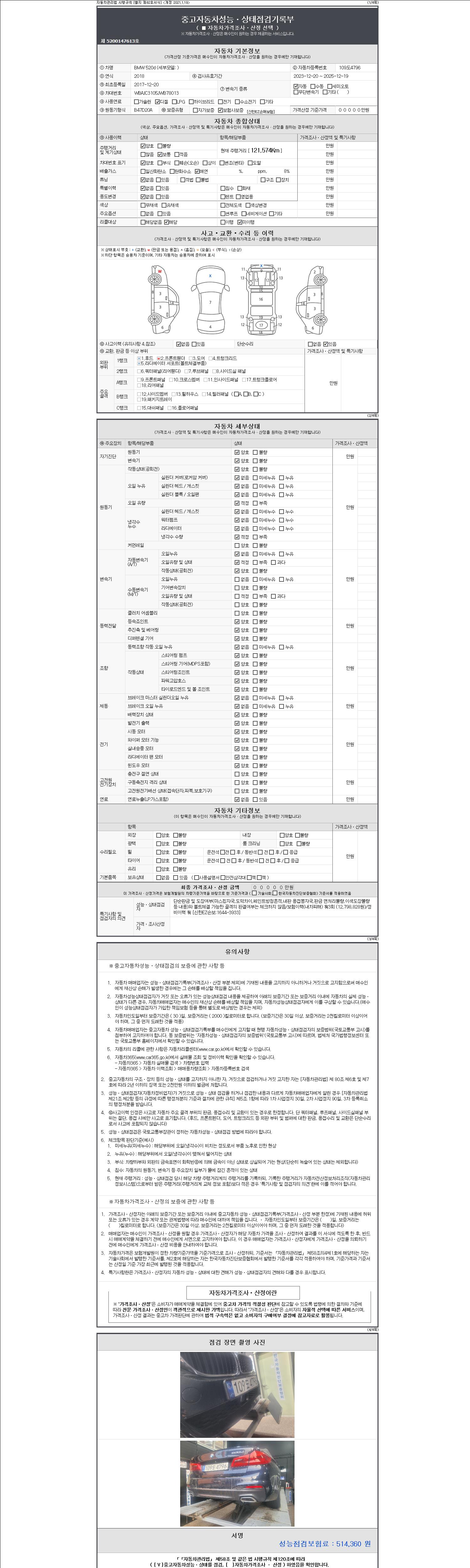 -중고자동차 매매업자를 통해 차량을 구입하실 경우 반드시 "중고자동차 성능, 상태점검 기록부"를 교뷰 받으셔야 하며, 매매업자는 반드시 의무 교부 하여야 압니다.