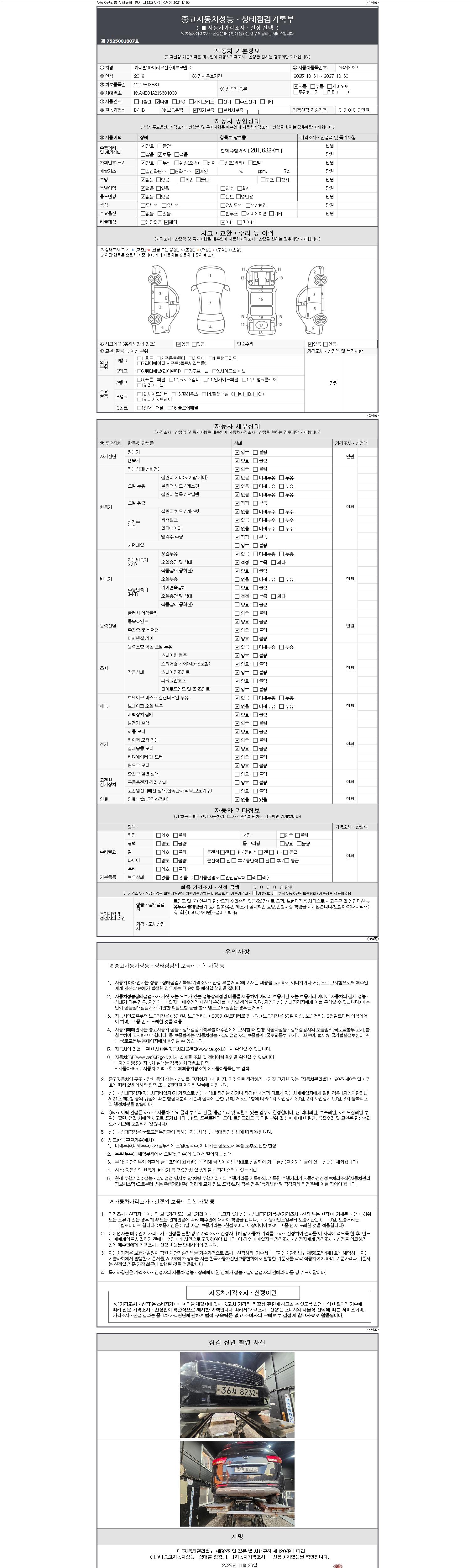 | 주행거리 | 201,632 km | 차량번호 | 36서8232 |