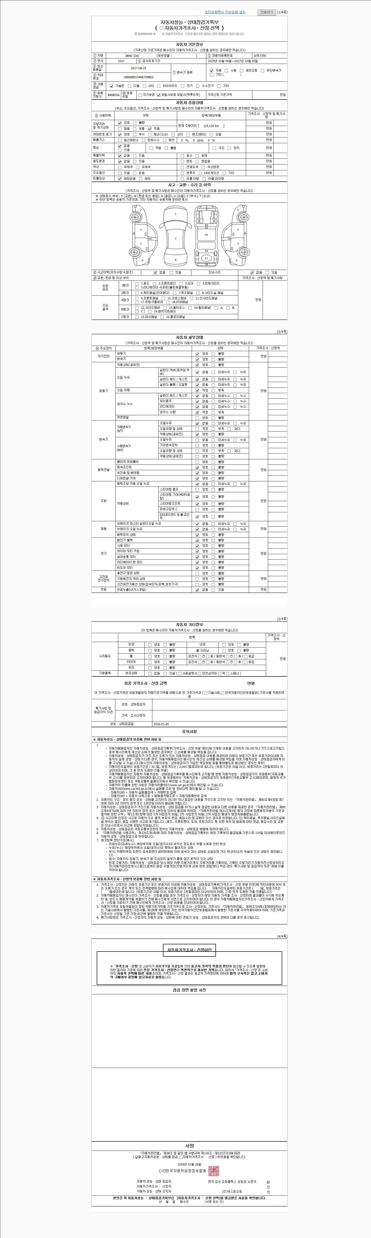 2. 차량 등록증이나 성능점검지 등을 상담자에게 요청및 확인하시고 사전에 미리 점검 하시기를 권유드립니다.