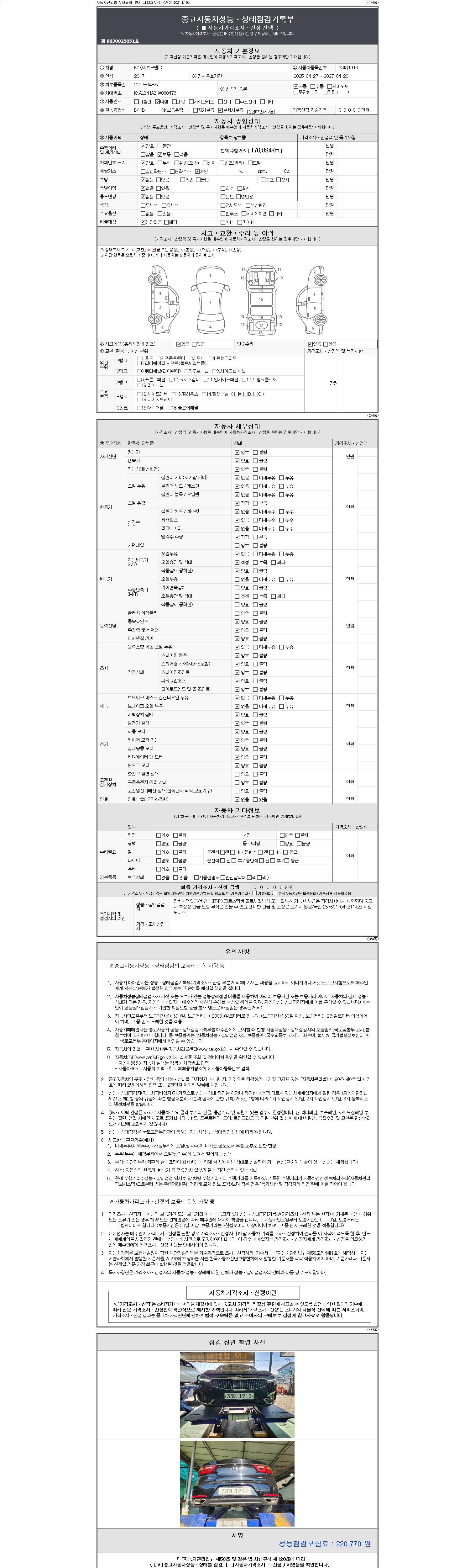 2. 차량 등록증이나 성능점검지 등을 상담자에게 요청및 확인하시고 사전에 미리 점검 하시기를 권유드립니다.