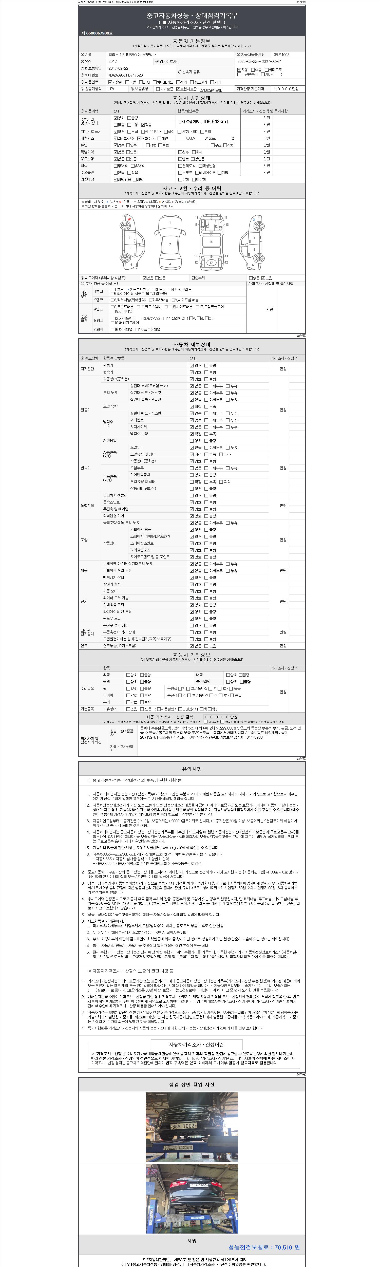 2. 차량 등록증이나 성능점검지 등을 상담자에게 요청및 확인하시고 사전에 미리 점검 하시기를 권유드립니다.