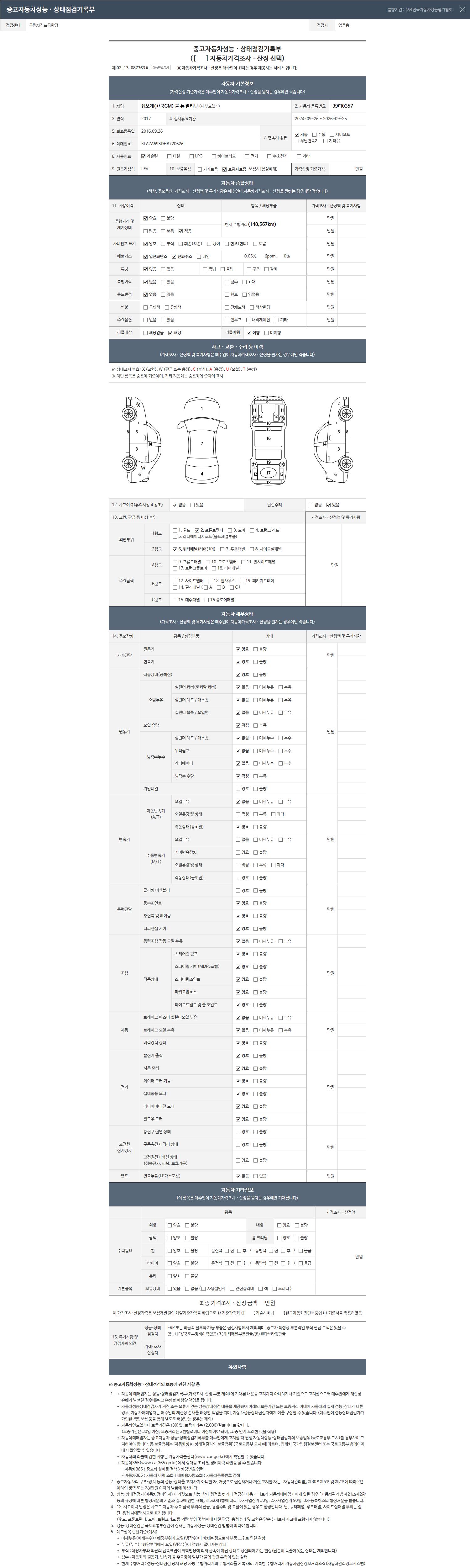 2. 차량 등록증이나 성능점검지 등을 상담자에게 요청및 확인하시고 사전에 미리 점검 하시기를 권유드립니다.