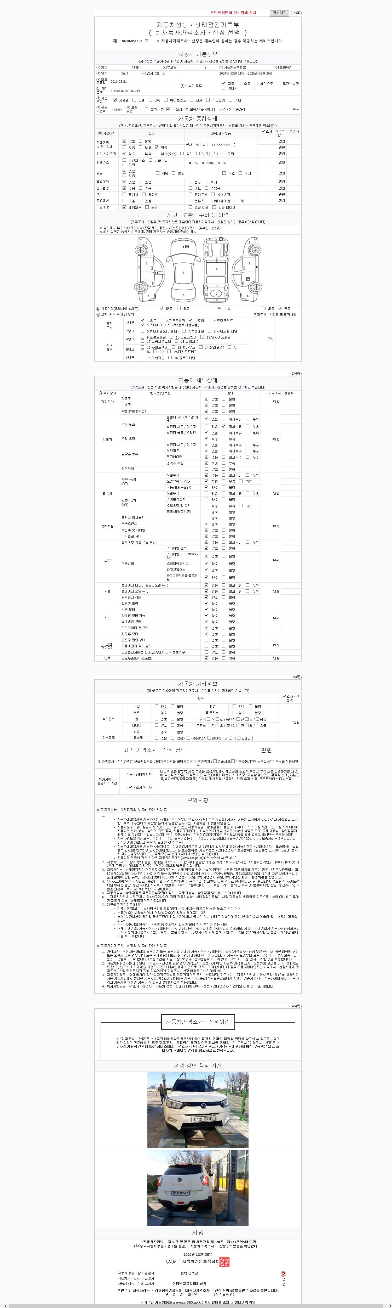 | 주행거리 | 119,559 km | 차량번호 | 01보0947 |