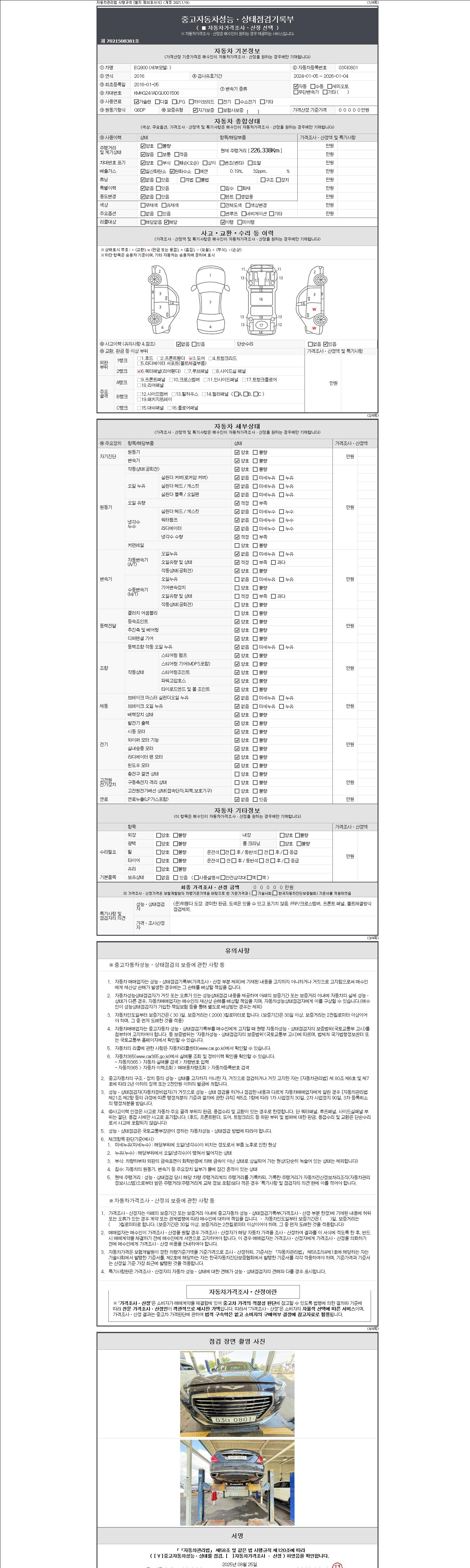 2. 차량 등록증이나 성능점검지 등을 상담자에게 요청및 확인하시고 사전에 미리 점검 하시기를 권유드립니다.