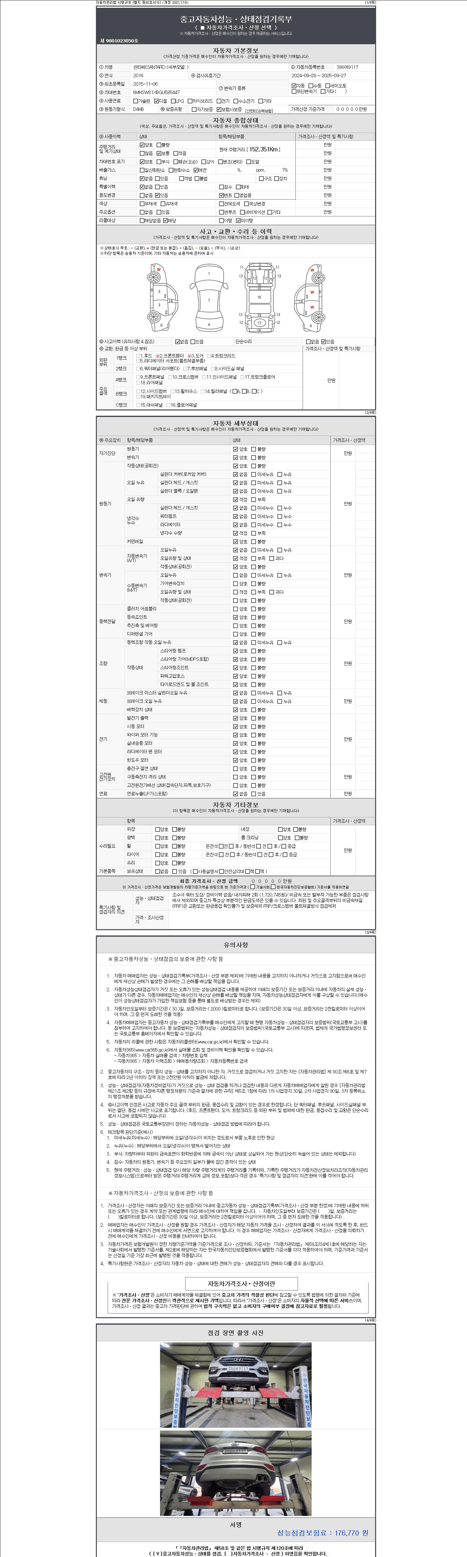 -중고자동차 매매업자를 통해 차량을 구입하실 경우 반드시 "중고자동차 성능, 상태점검 기록부"를 교뷰 받으셔야 하며, 매매업자는 반드시 의무 교부 하여야 압니다.