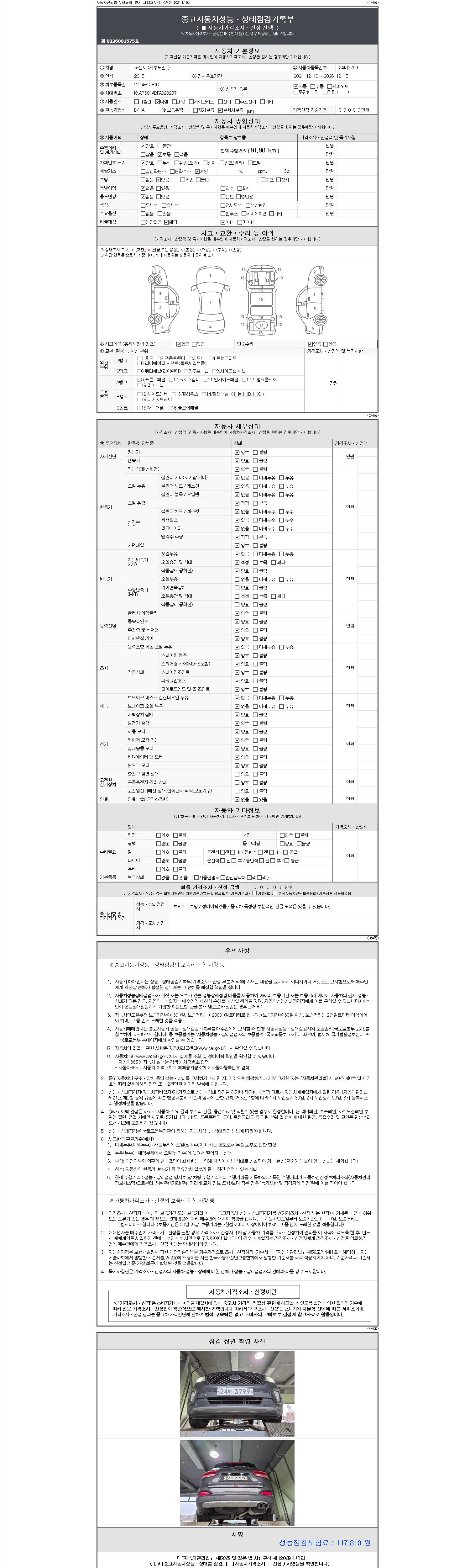 | 주행거리 | 91,901 km | 차량번호 | 24버3799 |