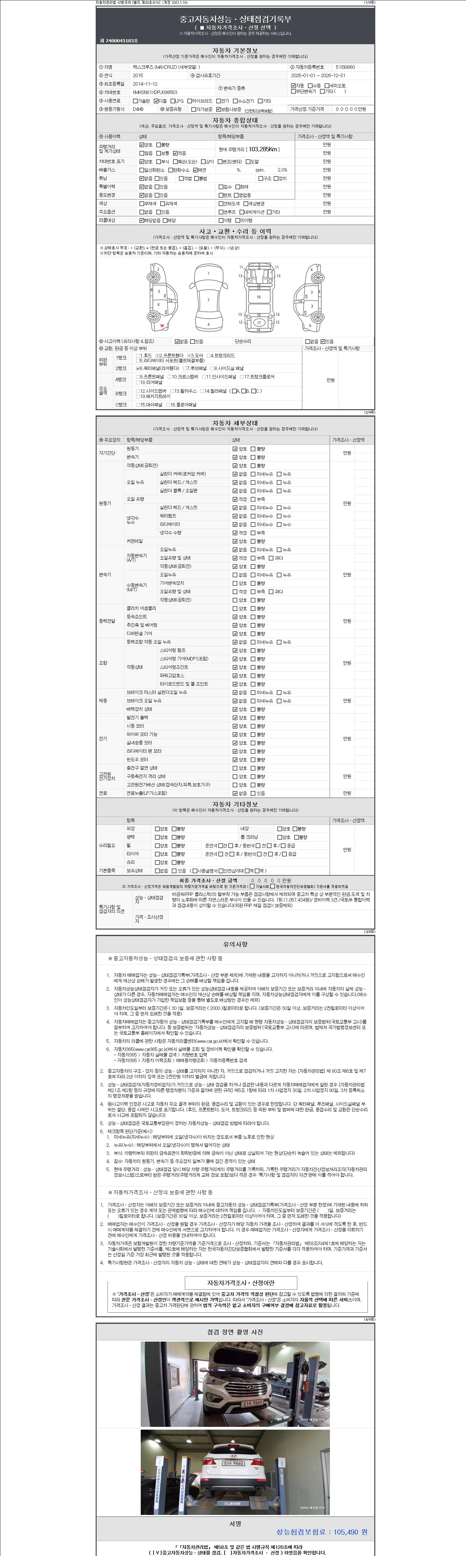 2. 차량 등록증이나 성능점검지 등을 상담자에게 요청및 확인하시고 사전에 미리 점검 하시기를 권유드립니다.