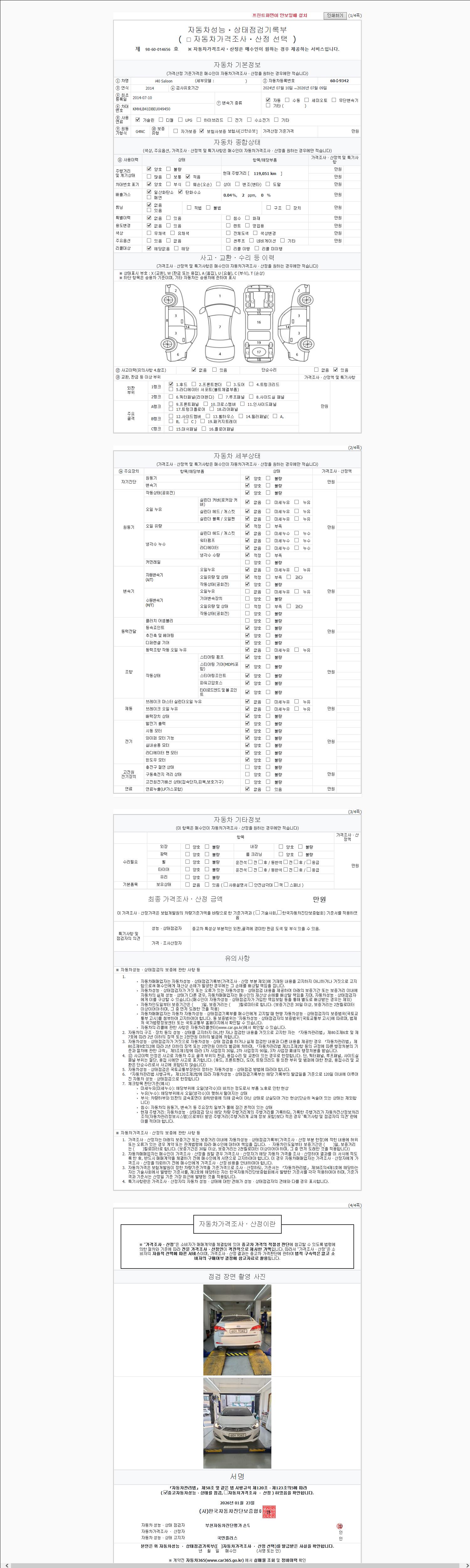 2. 차량 등록증이나 성능점검지 등을 상담자에게 요청및 확인하시고 사전에 미리 점검 하시기를 권유드립니다.