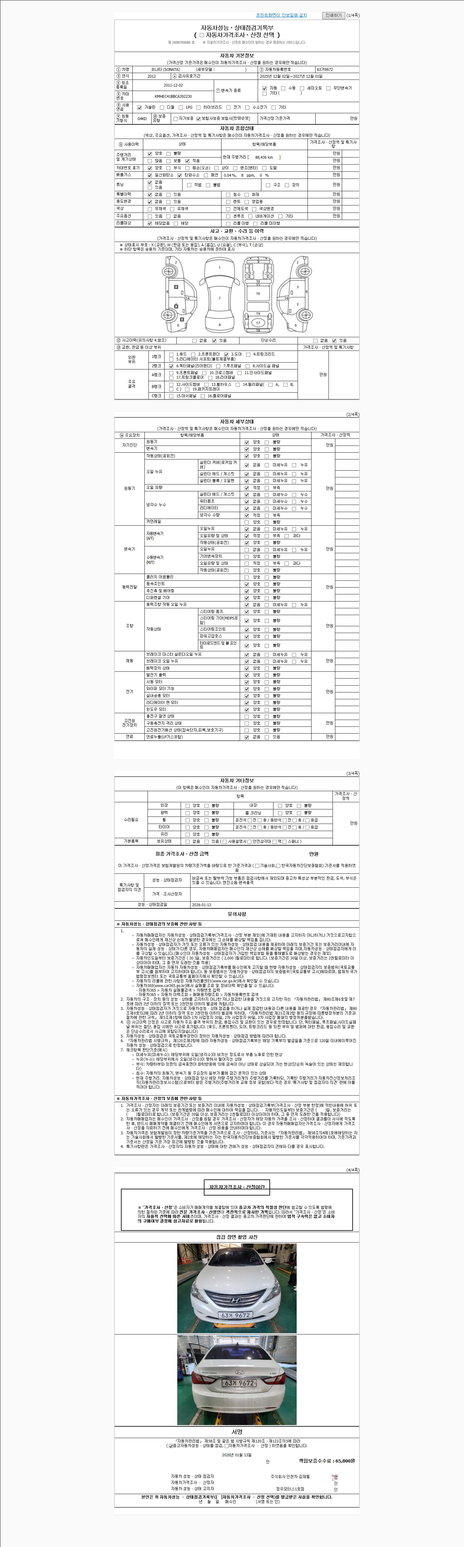 | 사고유무 | 성능기록부 참조 | 제시번호 | 제 2026002208 호 |