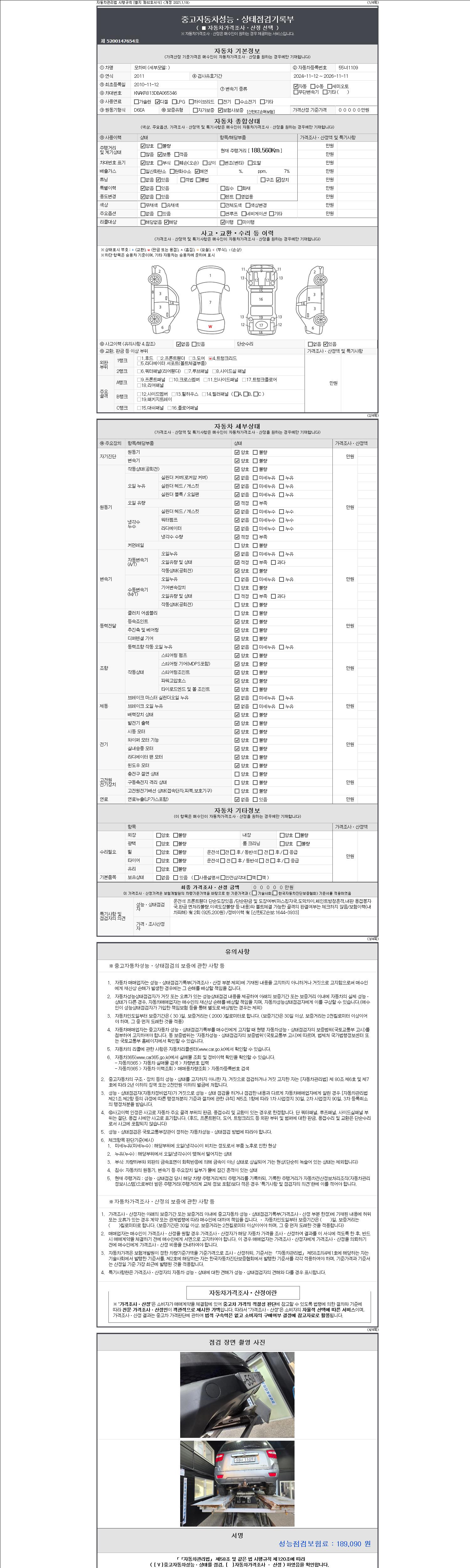 -중고자동차 매매업자를 통해 차량을 구입하실 경우 반드시 "중고자동차 성능, 상태점검 기록부"를 교뷰 받으셔야 하며, 매매업자는 반드시 의무 교부 하여야 압니다.