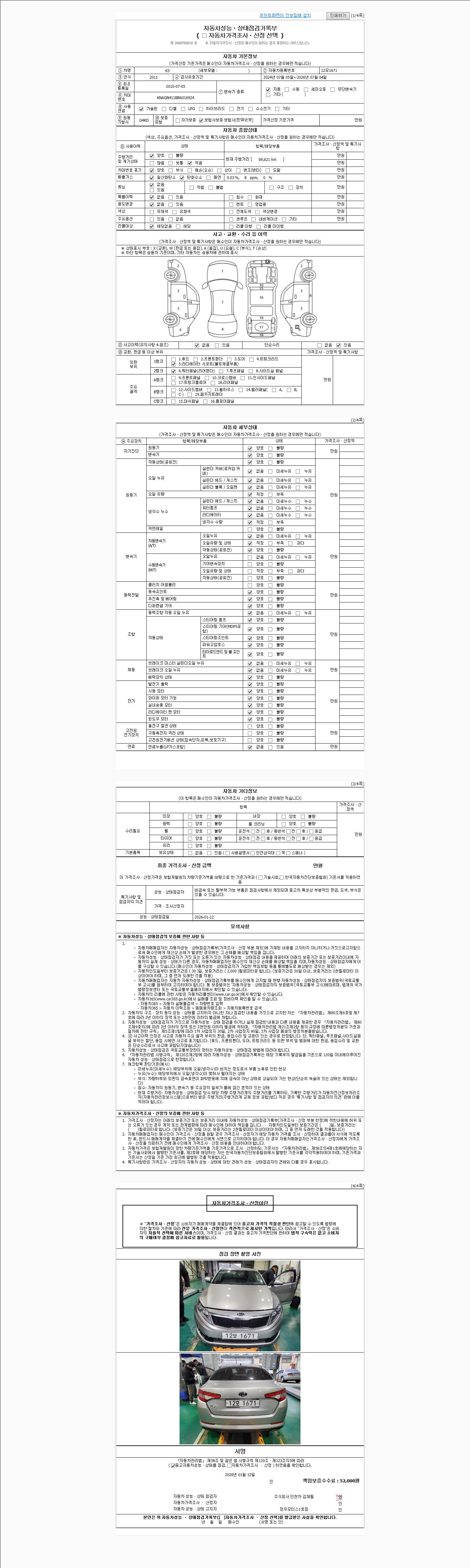 | 사고유무 | 성능기록부 참조 | 제시번호 | 제 2026001970 호 |