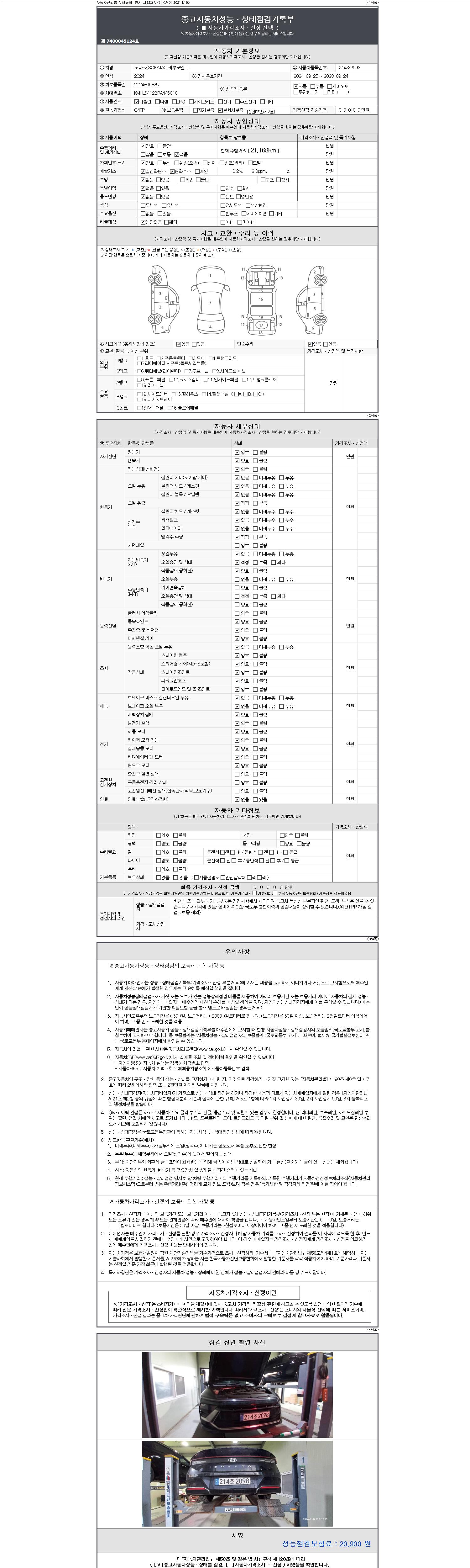 -중고자동차 매매업자를 통해 차량을 구입하실 경우 반드시 "중고자동차 성능, 상태점검 기록부"를 교뷰 받으셔야 하며, 매매업자는 반드시 의무 교부 하여야 압니다.