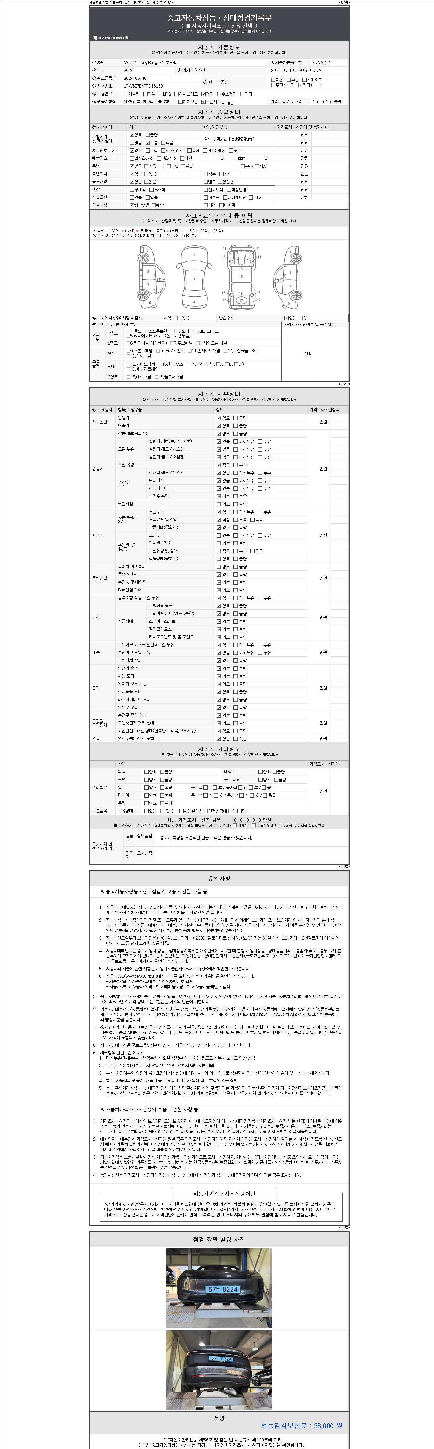 | 주행거리 | 8,663 km | 차량번호 | 57누8224 |