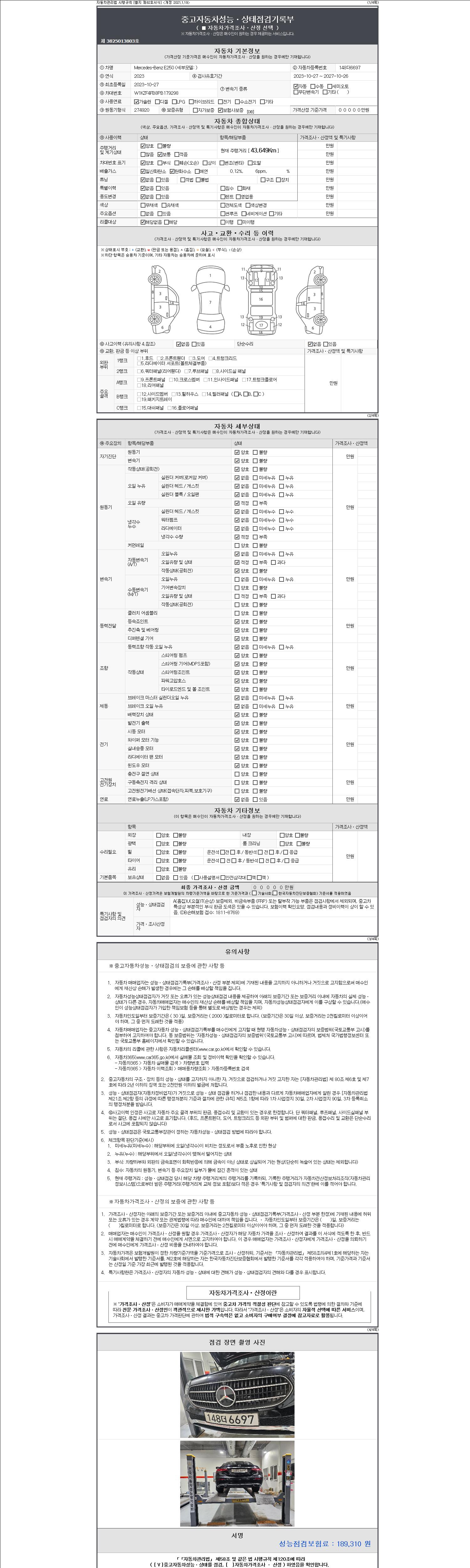 2. 차량 등록증이나 성능점검지 등을 상담자에게 요청및 확인하시고 사전에 미리 점검 하시기를 권유드립니다.