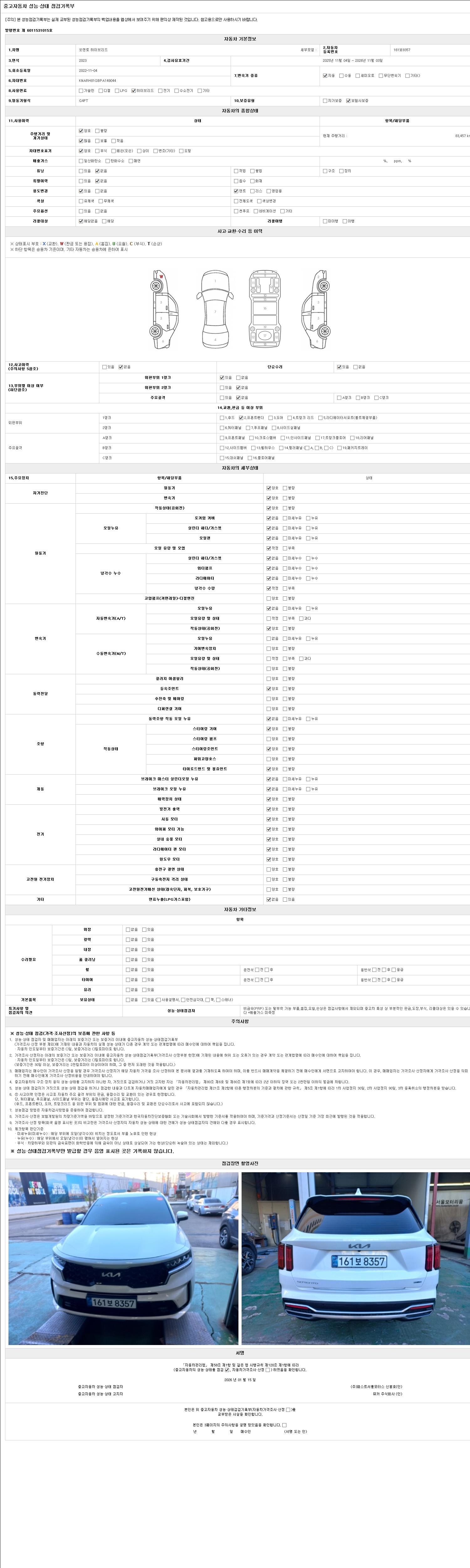2. 차량 등록증이나 성능점검지 등을 상담자에게 요청및 확인하시고 사전에 미리 점검 하시기를 권유드립니다.