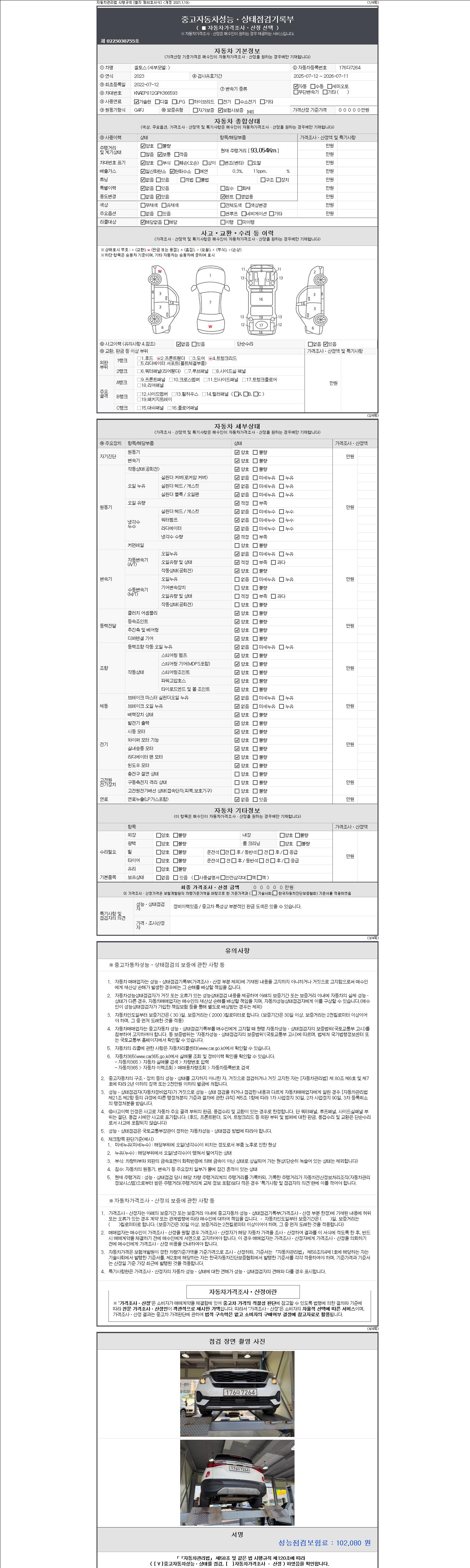 -중고자동차 매매업자를 통해 차량을 구입하실 경우 반드시 "중고자동차 성능, 상태점검 기록부"를 교뷰 받으셔야 하며, 매매업자는 반드시 의무 교부 하여야 압니다.