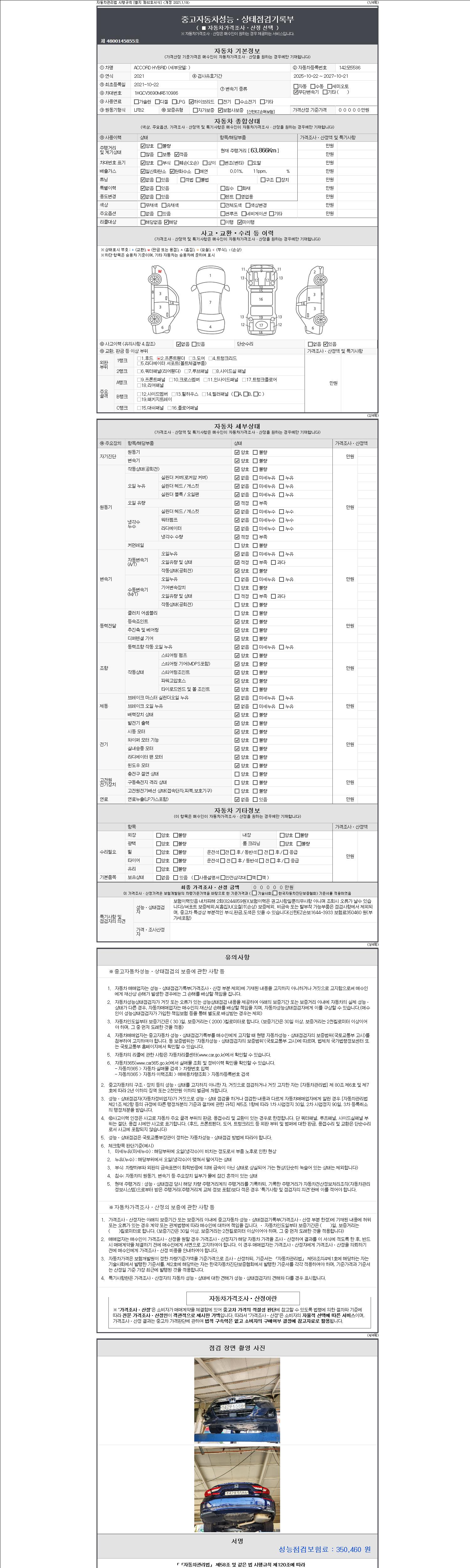 -중고자동차 매매업자를 통해 차량을 구입하실 경우 반드시 "중고자동차 성능, 상태점검 기록부"를 교뷰 받으셔야 하며, 매매업자는 반드시 의무 교부 하여야 압니다.