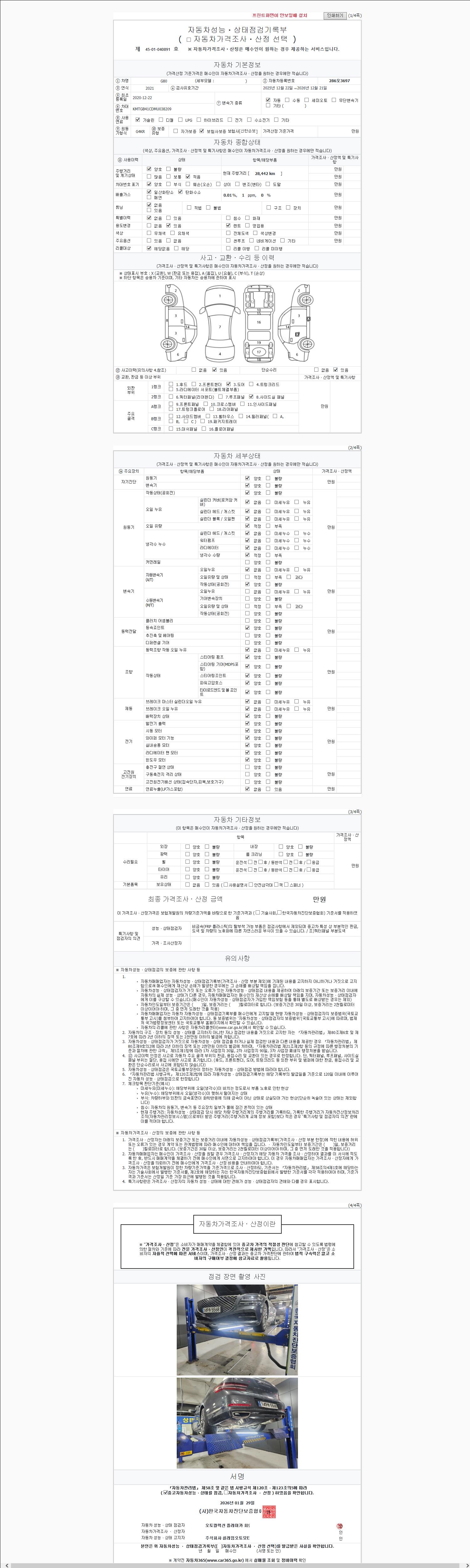 | 주행거리 | 28,442 km | 차량번호 | 286오3697 | 사고유무 | 성능기록부 참조 | 제시번호 | 제 2147483647 호 |