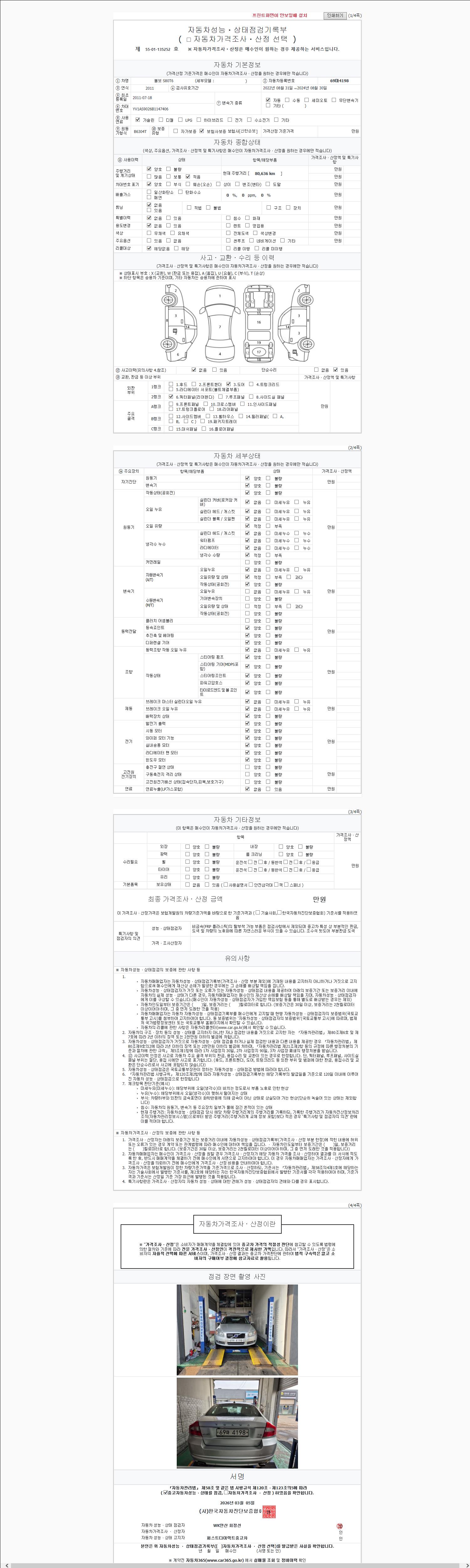 | 주행거리 | 80,636 km | 차량번호 | 69마4198 | 사고유무 | 성능기록부 참조 | 제시번호 | 제 2147483647 호 |