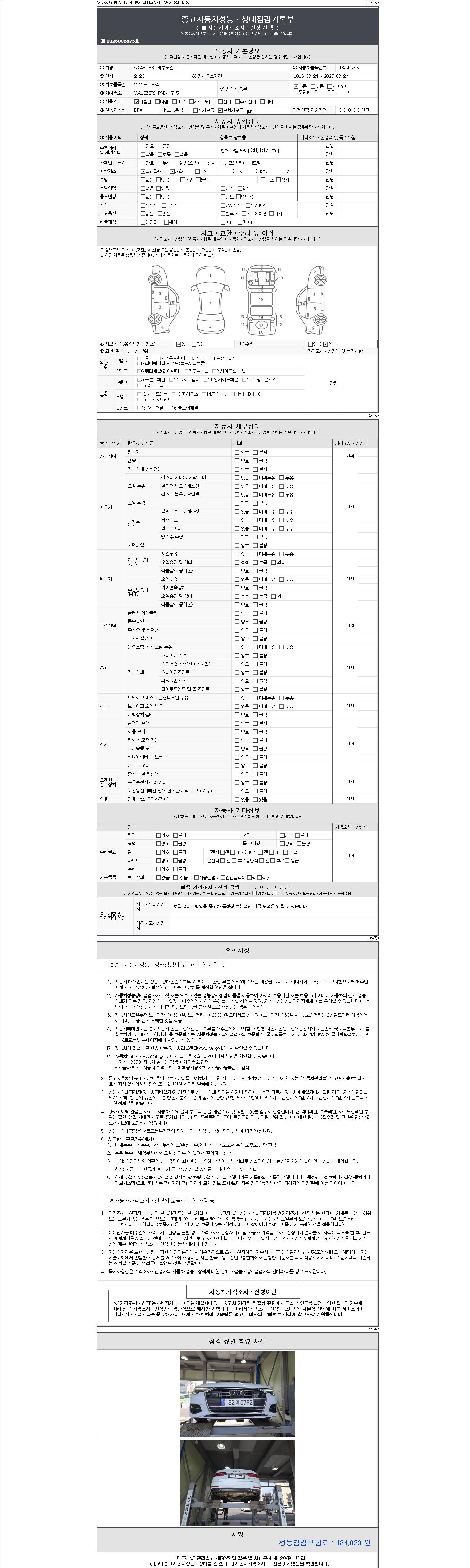 - 2. 차량 등록증이나 성능점검지 등을 상담자에게 요청및 확인하시고 사전에 미리 점검 하시기를 권유드립니다.