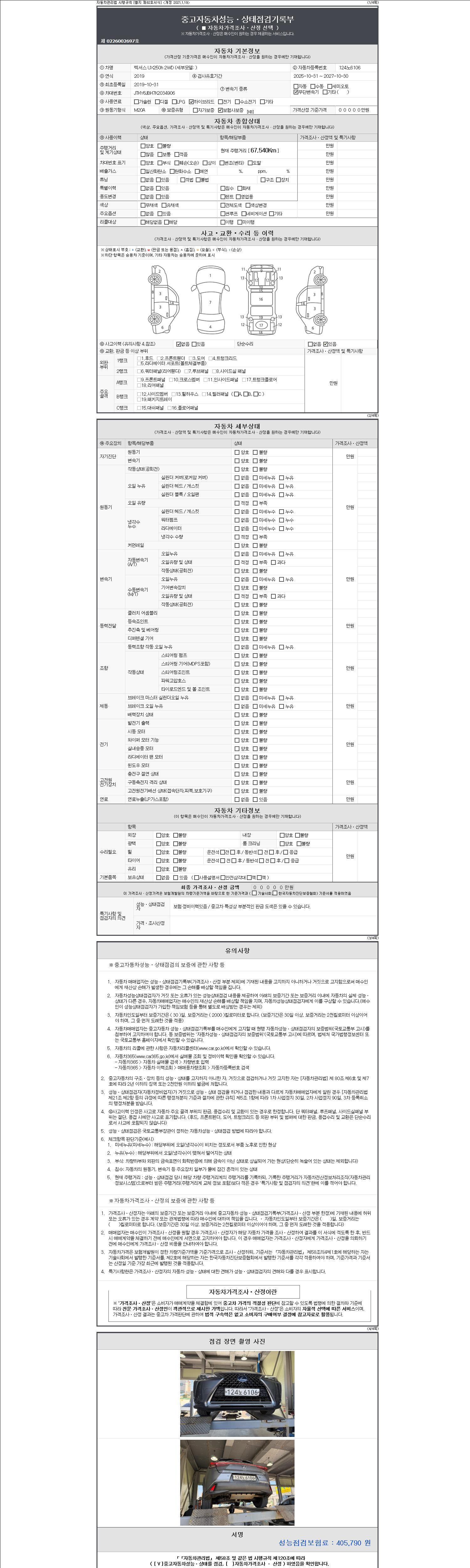 | 주행거리 | 67,540 km | 차량번호 | 124노6106 | 사고유무 | 성능기록부 참조 | 제시번호 | 제 2147483647 호 |