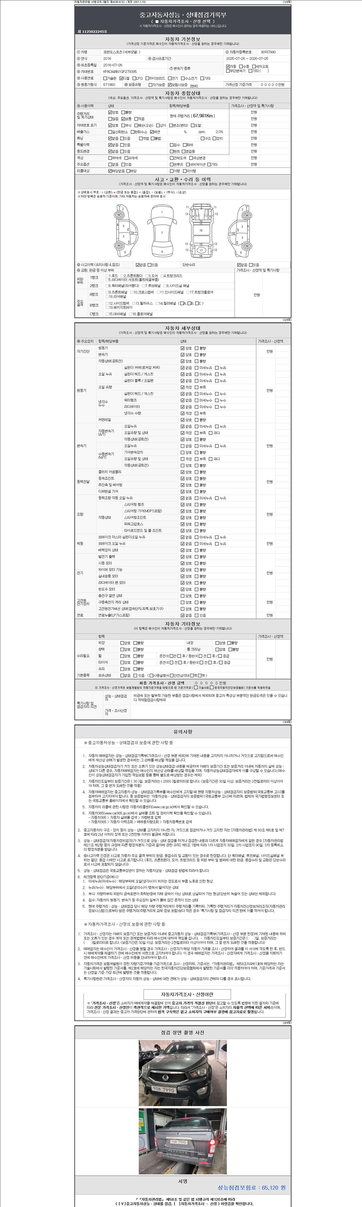 | 주행거리 | 67,981 km | 차량번호 | 90마7990 | 사고유무 | 성능기록부 참조 | 제시번호 | 제 2147483647 호 |
